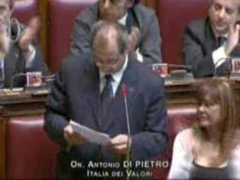 Antonio Di Pietro, intervenendo alla Camera per la dichiarazione di voto sulla questione di fiducia al governo, ha attaccato senza freni il presidente del Consiglio, Silvio Berlusconi, accusandolo con termini durissimi tanto da ricevere due richiami all'ordine dal presidente della Camera, Gianfranco Fini. "Lei è uno spregiudicato illusionista, anzi un pregiudicato illusionista - ha esordito il leader di Idv -, anche oggi ha raccontato un sacco di frottole agli italiani descrivendo un'Italia che non c'è e progetti lontani dalla realtà mentre fuori c'è il paese reale che muore di fame di legalità e di democrazia". Di Pietro ha paragonato il premier all'imperatore Nerone, "come lei rideva mentre Roma bruciava", quindi lo ha definito "capo piduista, interessato solo agli affari e ai guai giudiziari suoi e della sua cricca, bravissimo anche a comprare il consenso dei suoi alleati e degli avversari, i primi pagandoli con moneta sonante, i secondi ricattandoli con sistematiche azioni di dossieraggio e killeraggio politico". L'invito di Fini ad usare "termini consoni all'Aula di Montecitorio" non ha fermato Di Pietro che ha descritto Berlusconi come "vero maestro di massoneria deviata, precursore della collusione e della corruzione di Stato, inventore di una corruzione di nuovo conio, più moderna e spregiudicata, che cambia le leggi per eliminare i reati". I toni di Di Pietro sono culminati in una accusa che ha suscitato le proteste dei deputati del Pdl: "Lei non è un presidente del Consiglio ma uno stupratore della democrazia, non è un tentacolo della piovra ma la testa della piovra che si è appropriata delle istituzioni in modo criminale"